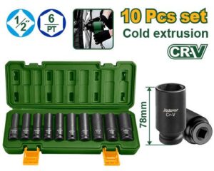 10 Pcs 1/2″ jeu de douilles a choc profonde Jadever JDMS2D02