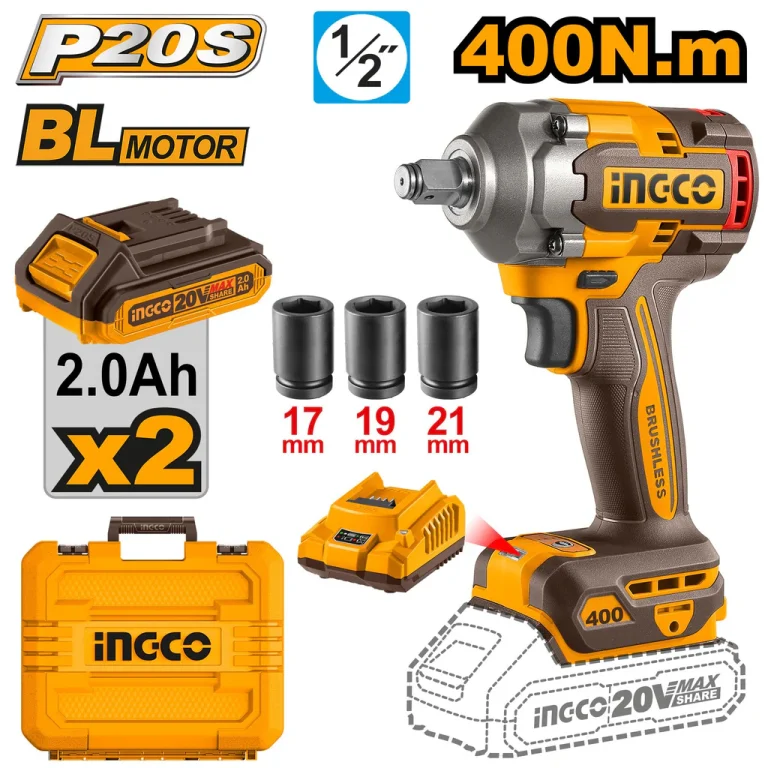 Boulonneuse à choc20V 400 Nm 2BATT sanscharbons SI INGCO