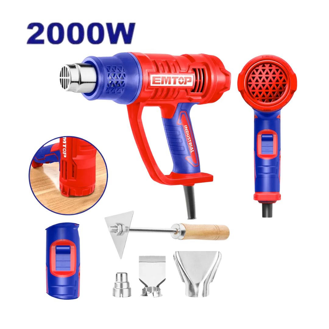 Le pistolet thermique EMTOP EHGN20078 2000 W est un outil puissant destiné aux travaux de séchage, décapage de peinture, thermoformage et soudure plastique. Son chauffage rapide permet une montée en température efficace pour un travail rapide et précis. Équipé de réglages de température variables, il s’adapte à différents matériaux et applications. Léger et ergonomique, il offre un confort optimal lors d’une utilisation prolongée, idéal pour les travaux professionnels comme pour le bricolage.