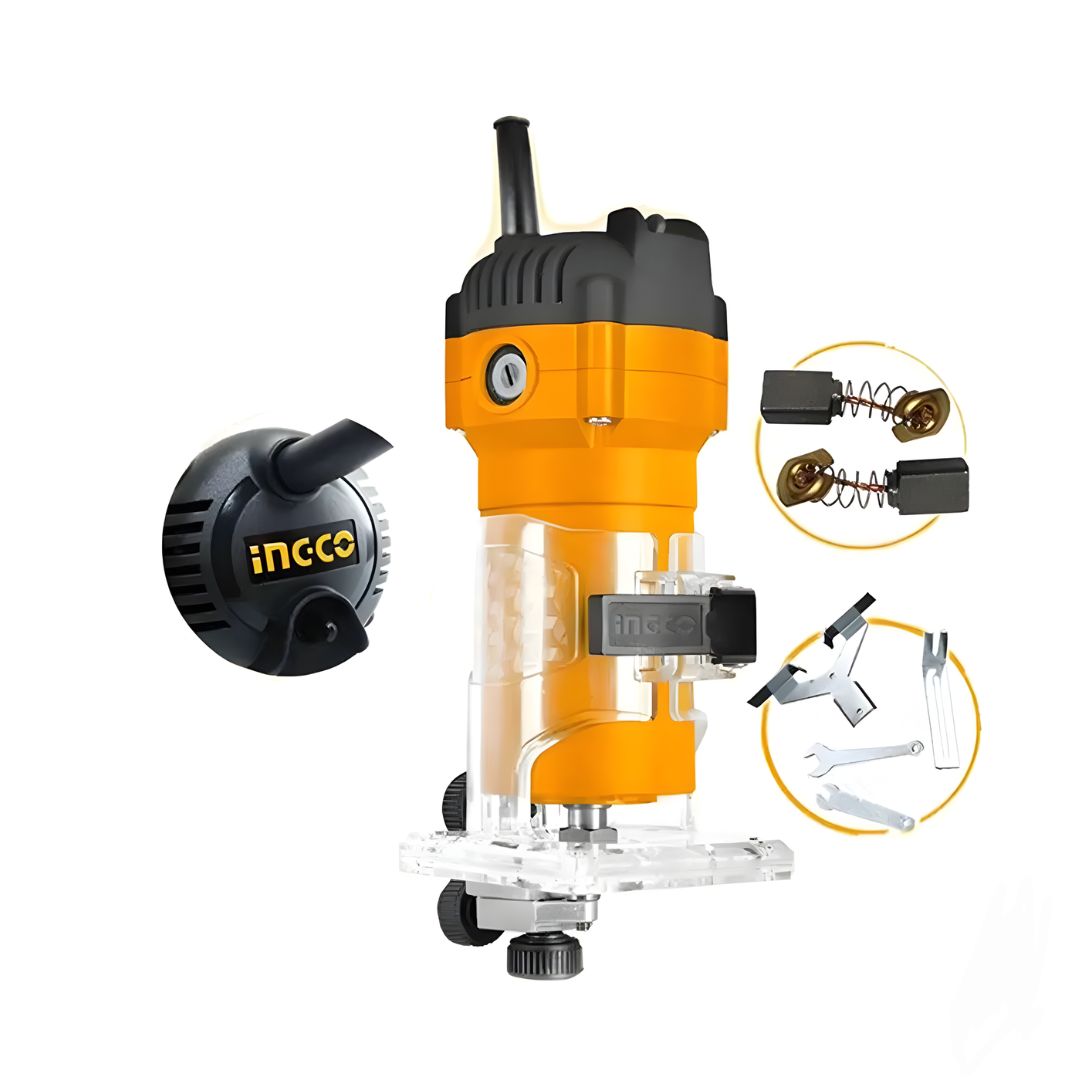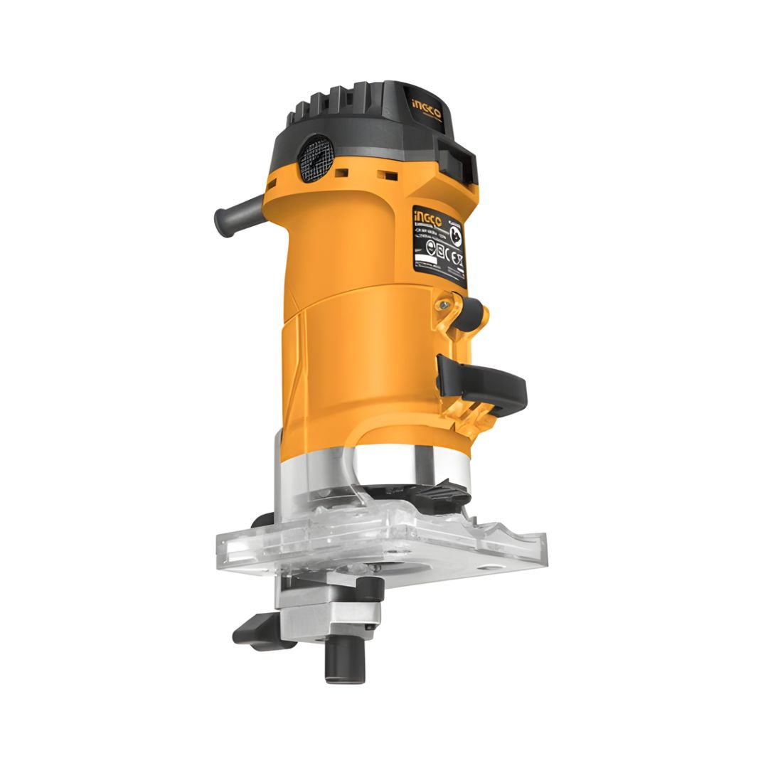 Affleureuse / trimmer de paume 600 W pour bois, stratifié et plastique, avec mandrin Ø 6 mm et ¼″, idéale pour façonnage et finition des bords.