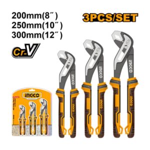 Le set HPPS28318 est un ensemble de 3 pinces-serre-tubes (pince multiprise / “pump pliers”) de la marque INGCO. Il comprend trois tailles différentes : 8″, 10″ et 12″, pour offrir une bonne diversité selon les besoins. Fabriqué en acier Cr-V avec finition noire polie et équipé de poignées TPR bicolores (poignées antidérapantes), il assure une bonne prise en main, confort et robustesse. Each pince est conçue pour saisir, tenir ou serrer des objets variés — tuyaux, écrous, pièces métalliques — ce qui en fait un outil polyvalent pour plomberie, mécanique, montage et bricolage.