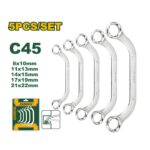 - Contenu : 5 clés annulaires « demi‑lune » (half‑moon / offset ring spanners)