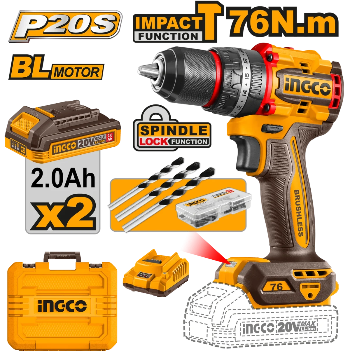 La perceuse à percussion sans fil compacte sans balais INGCO CIDLI20768 est un outil puissant et polyvalent conçu pour les professionnels et les amateurs de bricolage. Son moteur sans balais garantit une longue durée de vie, une meilleure performance et un rendement énergétique supérieur.