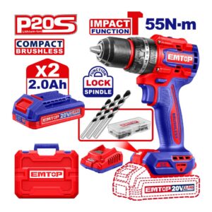 Perceuse/Visseuse à percusion sans fil 20V 55Nm + 2 Batteries 2.0Ah EMTOP