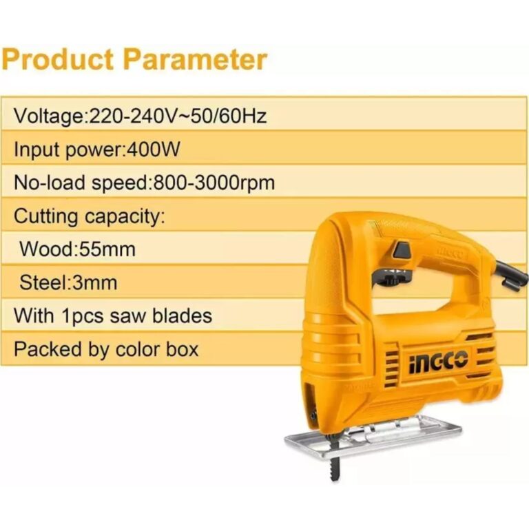 La scie sauteuse INGCO JS400285 400W offre une grande capacité de coupe, jusqu’à 55 mm dans le bois et 3 mm dans l’acier, avec une vitesse à vide de 800 à 3000 tr/min. Elle est équipée d’un contrôle de vitesse variable pour s’adapter à divers matériaux, livrée avec une lame et conditionnée en boîte couleur. Idéale pour les travaux de découpe précis dans le bois, le métal ou d’autres matériaux.