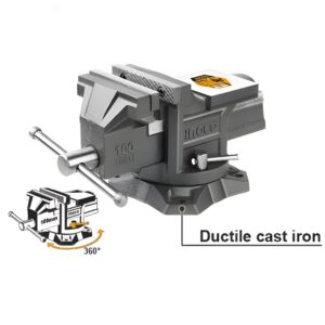 L’étau d’établi INGCO HBV088 est un outil robuste et polyvalent, idéal pour maintenir fermement des pièces lors de travaux manuels exigeants en atelier ou à la maison. Avec une base pivotante de 8 pouces (200 mm), il offre une grande flexibilité en s’ajustant sur 360°, ce qui facilite le travail sous différents angles. Fabriqué en fonte durable, il est conçu pour résister à une force de serrage impressionnante de 2500 kg, garantissant une stabilité maximale pour les pièces à usiner. Ses mâchoires en acier de haute qualité avec rainures en diamant assurent une prise ferme et sûre, tandis que la petite enclume intégrée ajoute une fonctionnalité pratique pour des tâches de frappe légères.