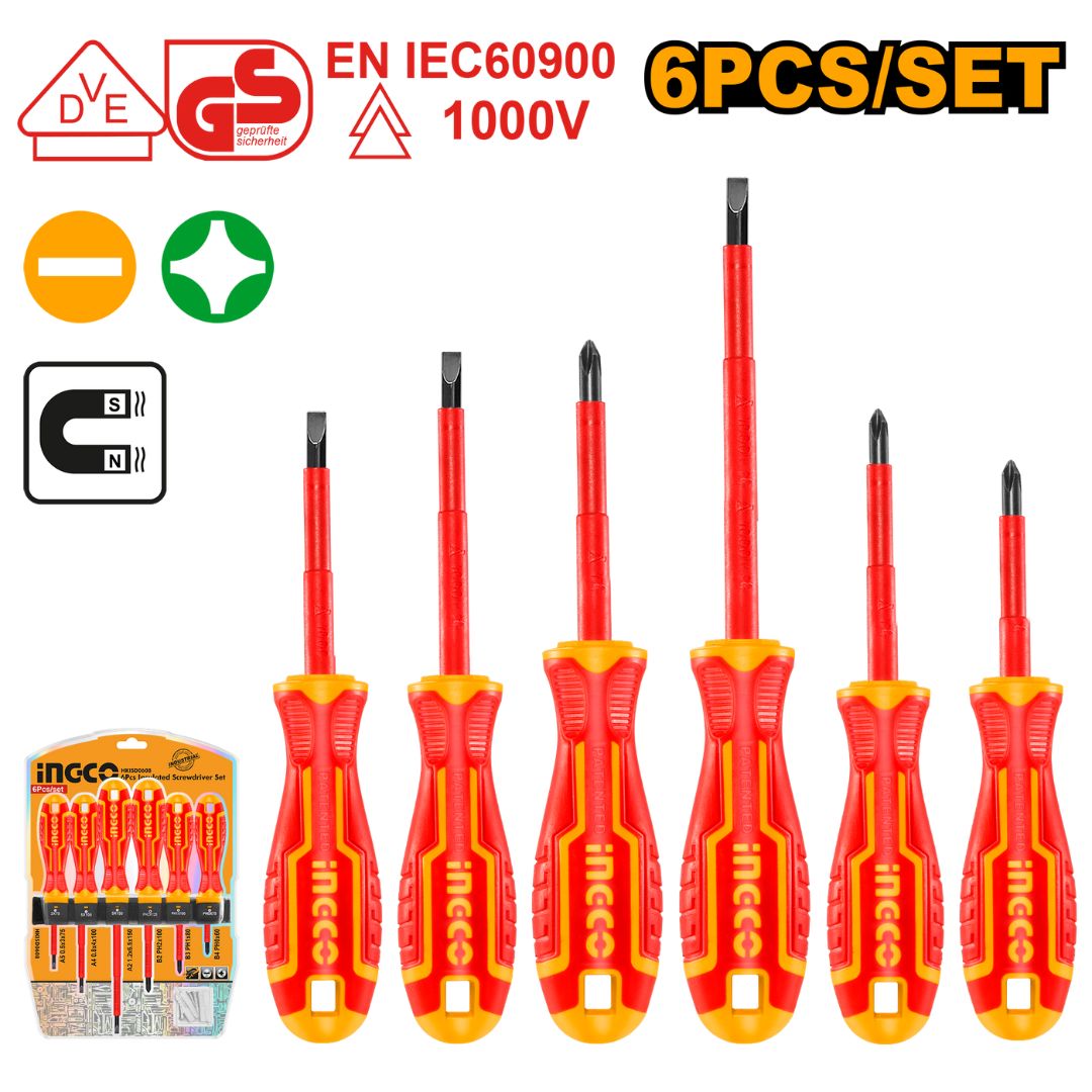 Le jeu de tournevis isolés INGCO HKISD0608 est conçu pour les travaux électriques en toute sécurité.
