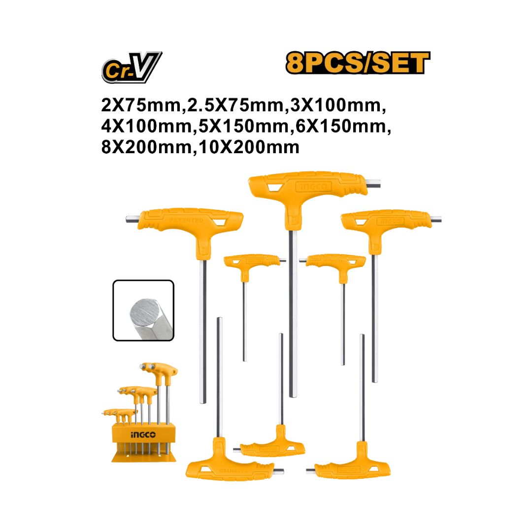 Jeu de 8 clés hexagonales à pointe sphérique T INGCO
