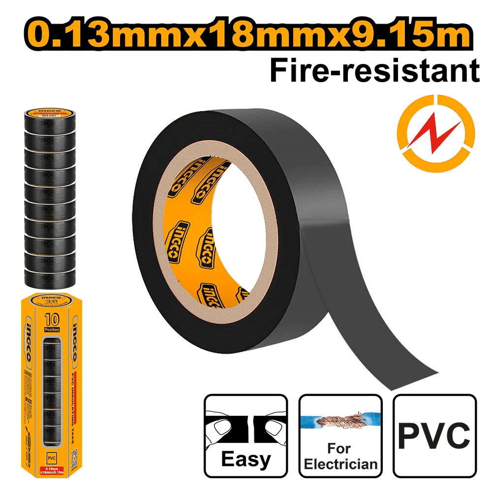 PVC Longueur : 9,15m (10 yards) Couleur : noire Largeur : 18mm Épaisseur : 0,13mm Emballé avec étiquette
