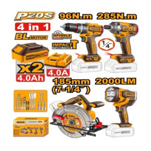 Le kit sans fil INGCO COSLI241297 regroupe quatre outils polyvalents alimentés par batterie : une perceuse‑visseuse à percussion, une visseuse à percussion (impact driver), une scie circulaire, et une lampe de travail LED. Grâce à sa plateforme 20 V, ses moteurs brushless et ses deux batteries 4.0 Ah, ce set assure puissance, mobilité et autonomie pour une variété de travaux — perçage, vissage, découpe de bois ou matériaux légers, et éclairage du chantier ou de la zone de travail. C’est un ensemble complet, pensé pour les bricoleurs comme pour les professionnels, qui souhaitent disposer d’outils fiables sans dépendre d’une prise électrique.