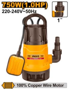Pompe centrifuge Tension : 220-240 V ~ 50 Hz Puissance nominale : 1 500 W (2,0 HP) Tête max. : 45 m Débit max. : 140 L/min Aspiration maximale: 8 m Diamètre du tuyau: 1 « x 1 » Moteur à fil de cuivre Arbre de soudage en acier inoxydable: 304 + 45 # Corps de pompe d’électrophorèse Roue en acier inoxydable Câble de 0,3 m de longueur Emballé dans une boîte en carton